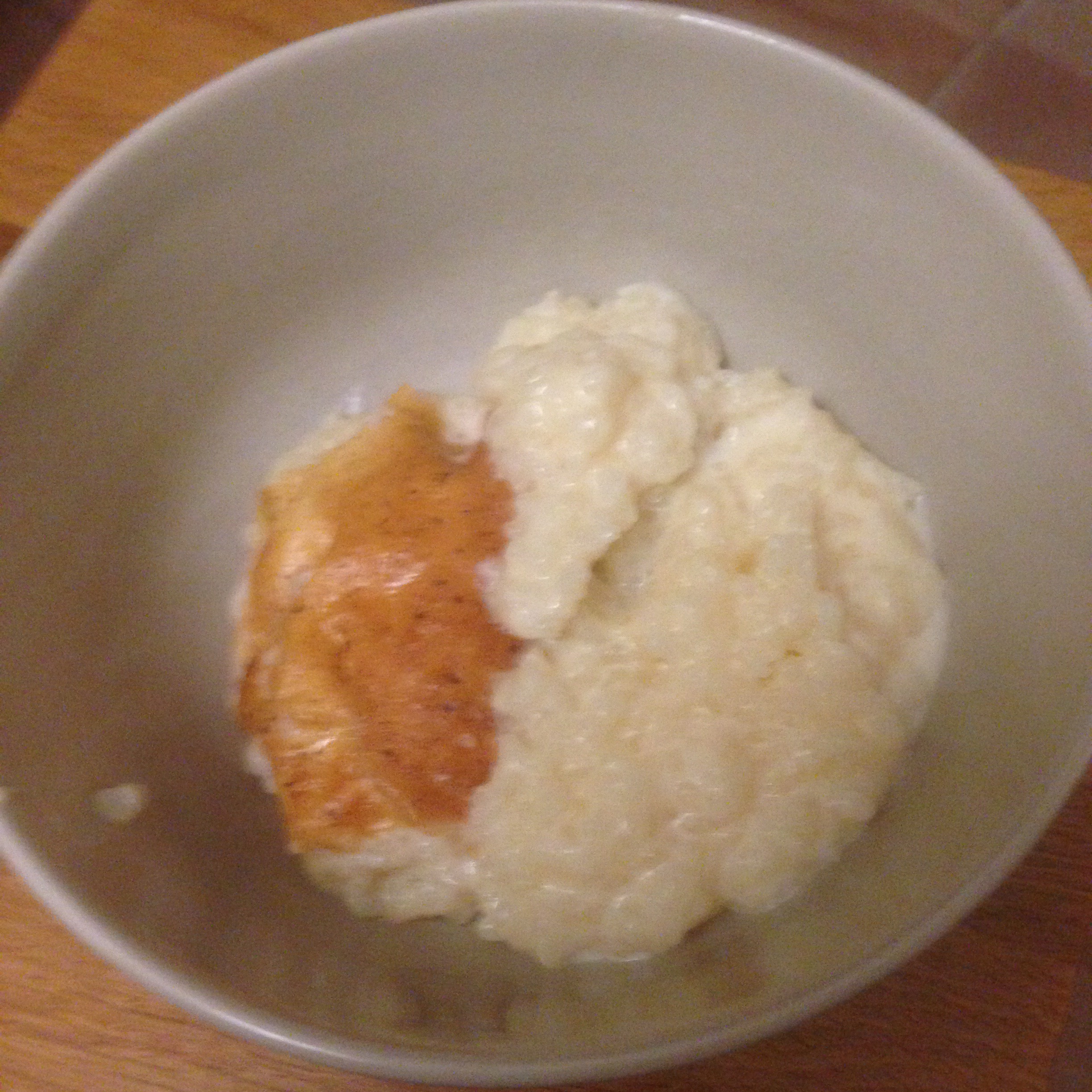 I have always liked rice pudding, whether it be the kind you buy in tins in shops (i.e. Ambrosia Rice Pudding) or whether the kind that my mother used to make when I was a kid. My memory of the home-made kind is unspecific but definite – the taste, the texture, the brown and crispy skin that I remember not liking particularly. My thoughts of the tinned kind revolve mostly around eating it for breakfast almost every day of a three week cycle touring trip around Ireland with my friend James in the late summer of our first year at university (1984). More recently, tinned rice pudding (or the same product in small plastic pots) has been an occasional food at homes when hunger pangs have struck or when I have felt in need of sustenance after a long run. I like tinned rice pudding but it’s not the same as the home-made kind and for years I have meant to make some (having never made it before). A few years ago I got as far as buying a packet of pudding rice, but that sat in the kitchen cupboard unopened until the use by date was well gone and the rubbish bin became its home…