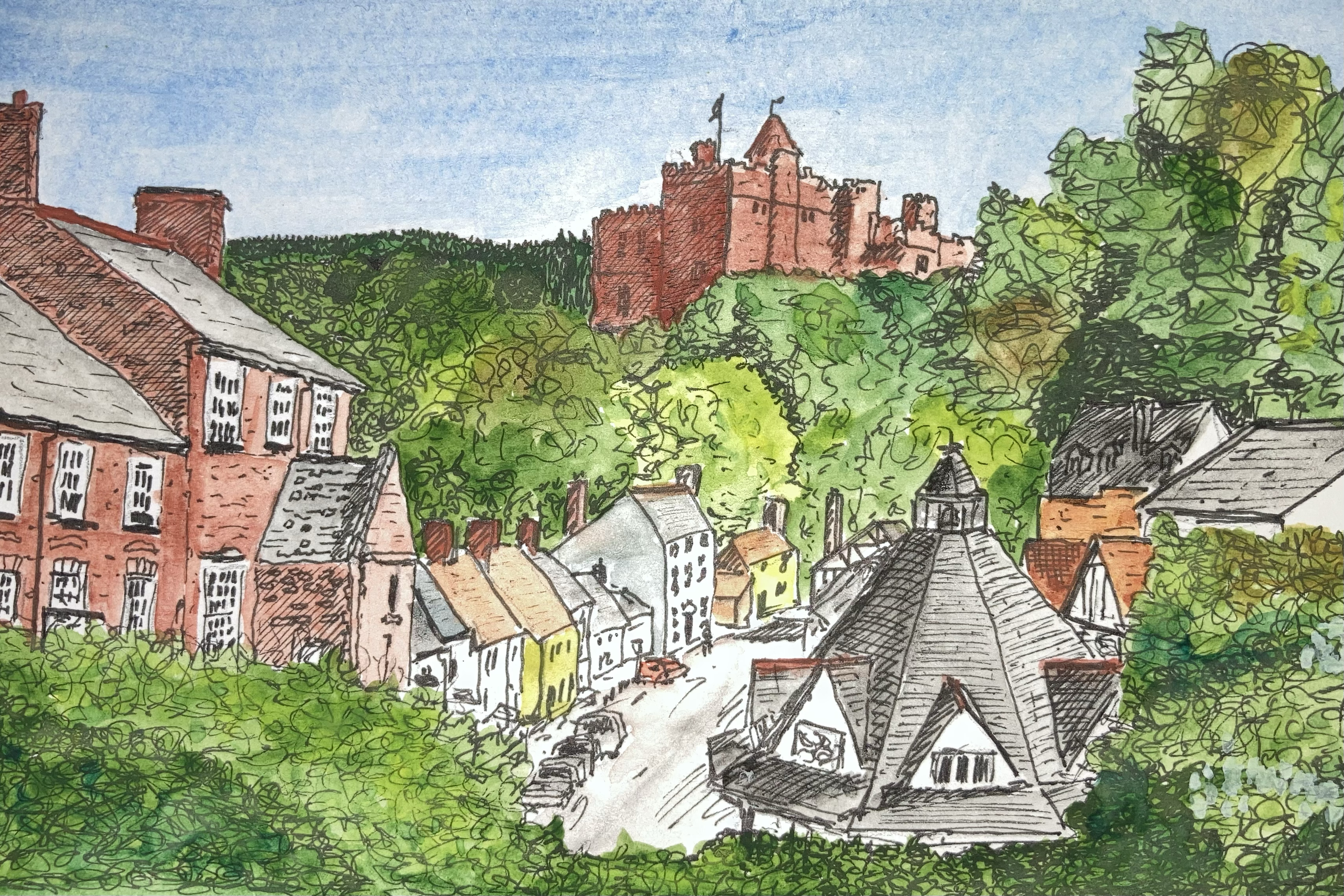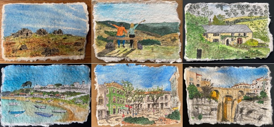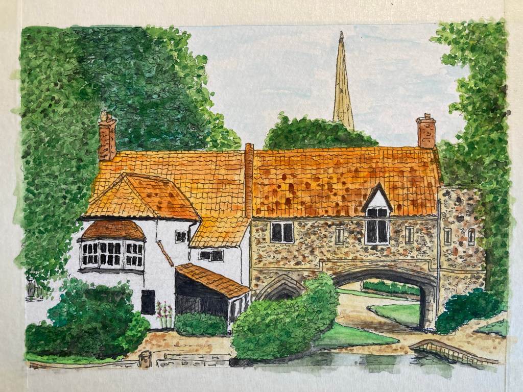 I started painting in April 2024 having hardly touched a paint brush, other than for decorating purposes, since being in secondary school art lessons (aged 13, some 45 years previously). I soon began to establish my own style, producing mostly small, fairly loose, ink and watercolour pictures of landscapes, landmarks and other buildings. I like to work quite quickly – a finished picture typically takes me 30-40 minutes. I’m completely self-taught, and learning by experimentation all the time. It has been a wonderfully enjoyable process of self-discovery, with the added bonus that my pictures seem to bring enjoyment to those that see them!