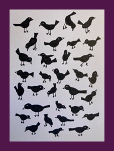 For the fourth day, having done a few trial sketches, I set about drawing small blackbirds. It was amusing to have it pointed out later that one of these was legless…