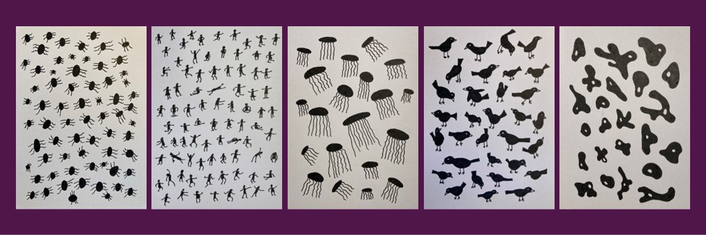 Without really thinking about what I was doing I grabbed a small sketchpad and in ink pen and starting doodling little bugs, eventually covering the page with an assortment of bugs all slightly different sizes, with different leg lengths and scurrying in different directions.