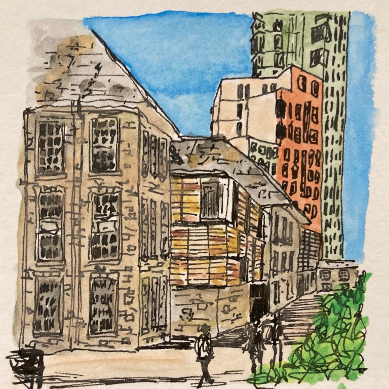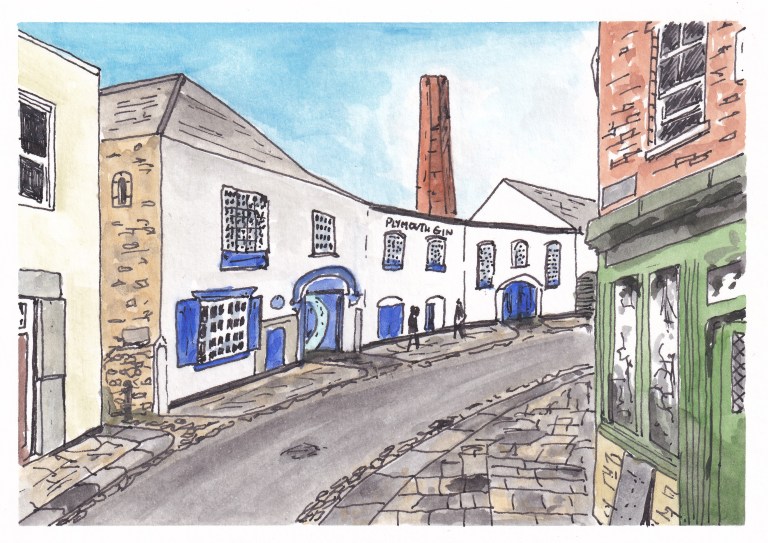 For my sixth Plymouth Postcard, I took a trip down to the Barbican area of the city for a view of the Plymouth Gin Distillery on Southside Street. It was difficult to get the perspective of the curved road right but I think I have just about managed it…