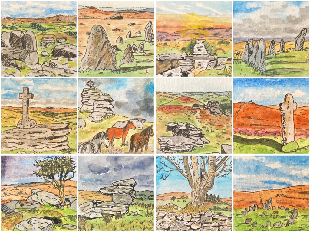 As I approached what I thought would be the final picture, I received a comment on my Bluesky (social media) account on which where I was posting my new picture each day, suggesting that the pictures would make a nice calendar. It was an idea that I liked, a lot, but of course a calendar needs 12 pictures, one for each month… and so my miniature watercolour Dartmoor Scenes series had to become a collection of 12 pictures in total.