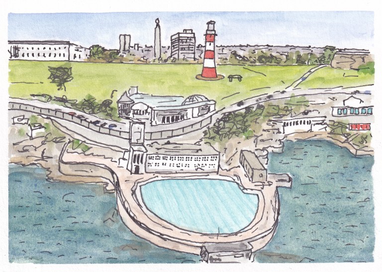 … and then it was back to the waterfront with a view of the art deco Tinside Lido with part of Plymouth Hoe, Smeaton’s Tower and the war memorial in the background…