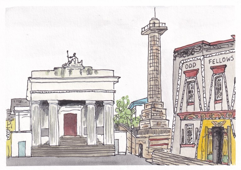 Devonport Town Hall and Column and the Odd Fellows Hall