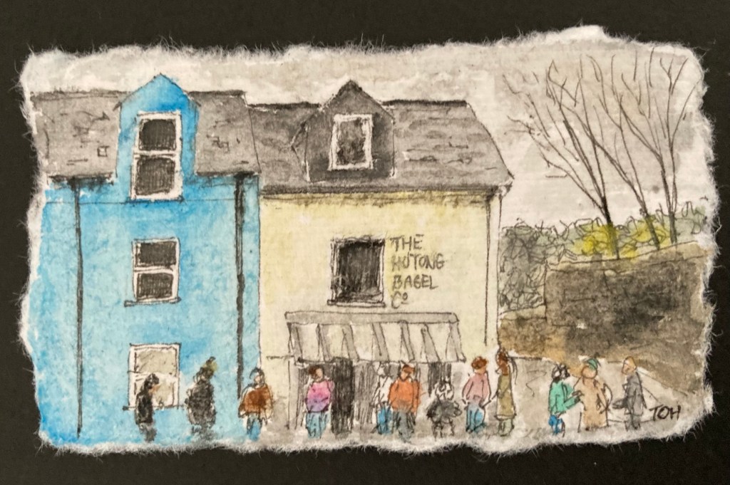 So here it is, my quick mini-watercolour of The Hutong Bagel Co.