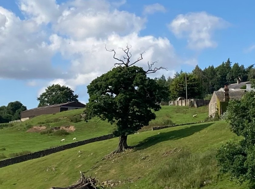 I think it is hard to beat an interesting tree – sometimes it is the shape that speaks to me, sometimes the colours and sometimes it’s the the signs of a hard life lived. So, you can perhaps imagine my excitement when I spotted this particular tree with its strong, thick trunk and its beautifully rounded and perfectly balanced shape all thickly enveloped by deep green leaves, so full of life… and yet, running upwards through its core, emerging to thrust like inverted lightning flashes from its top (and less visible in the photograph, a withered tendril reaching downwards on the left side), the sharp, angular, stripped-bare branches, absolutely dead to the world. This is a tree that is both dead at the core and alive at heart and I have never seen its like before.